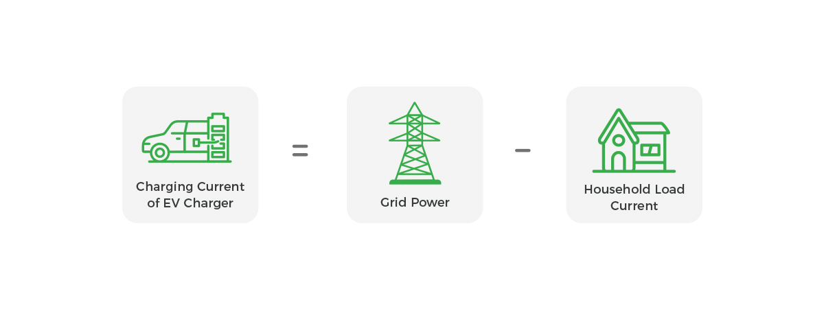 Door het energieverbruik van de huismeter te monitoren, wordt de stroom evenwichtig verdeeld naar het laadstation om overbelasting te voorkomen.